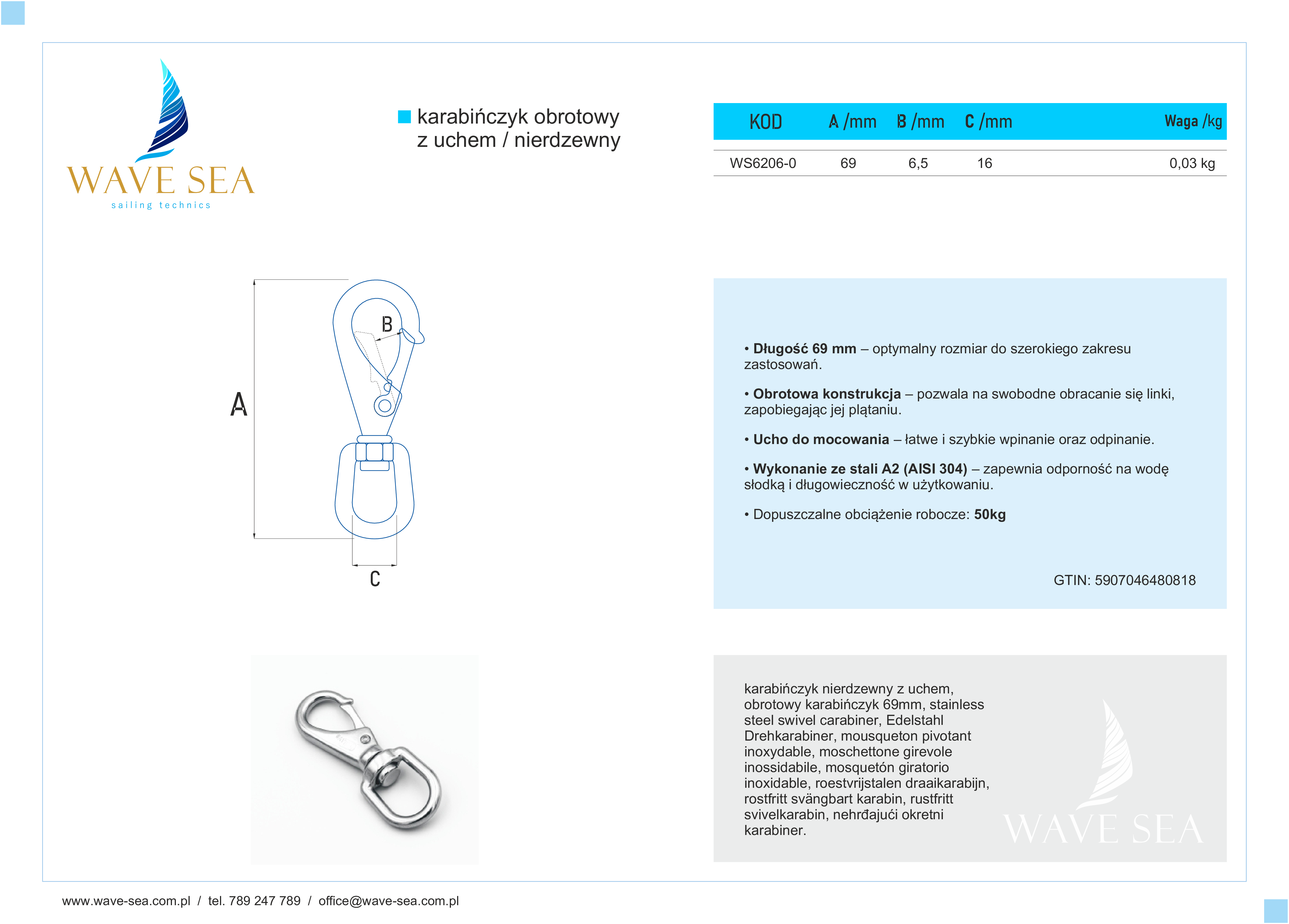 Karabińczyk obrotowy nierdzewny z uchem 69 mm to niezbędny element w każdym wyposażeniu łodzi, który łączy wygodę z niezawodnością. Zainwestuj w jakość, która sprosta wymaganiom Twojego jachtu.