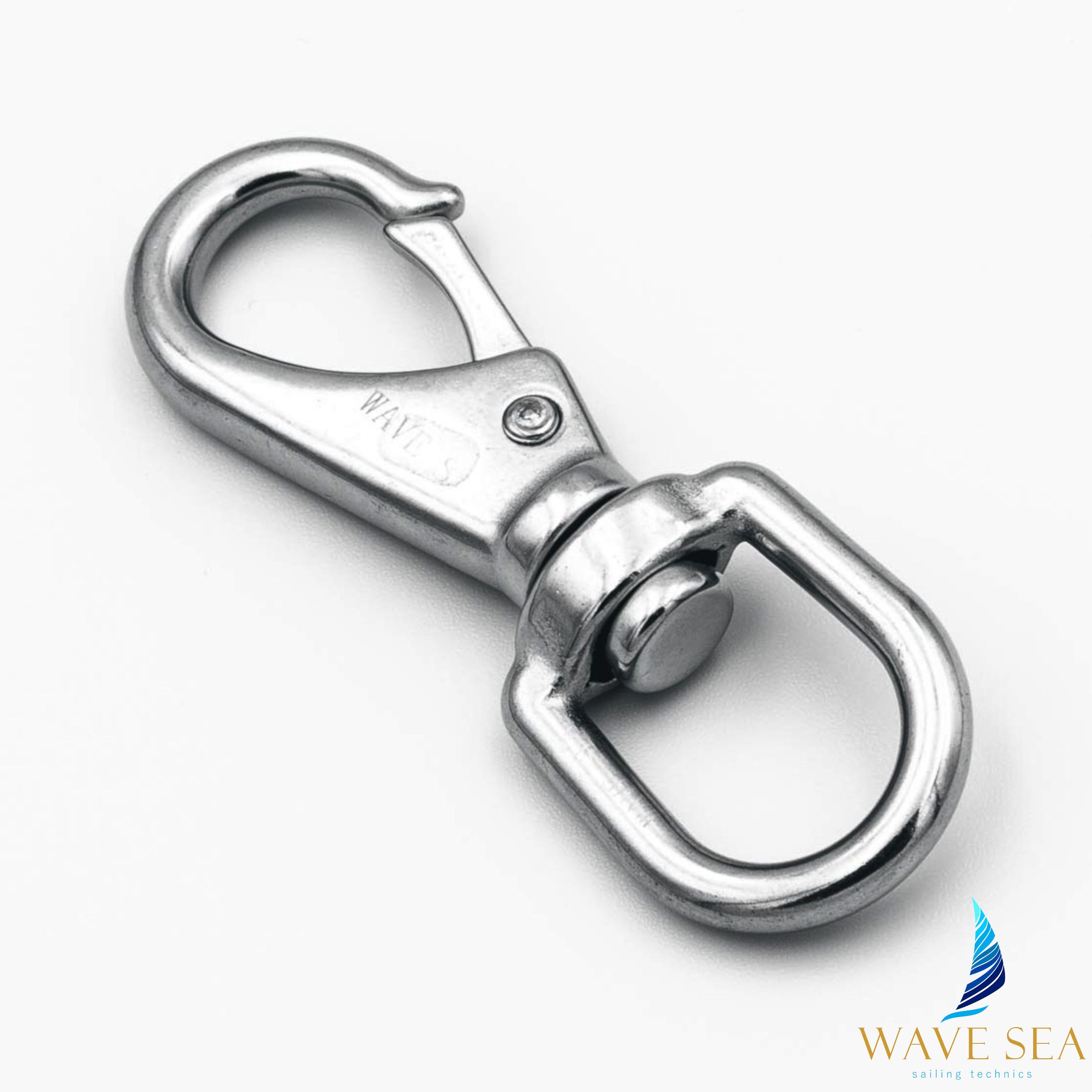 Wykonany z wysokiej jakości stali nierdzewnej, karabińczyk obrotowy jest odporny na warunki panujące na wodzie, gwarantując długotrwałe użytkowanie.