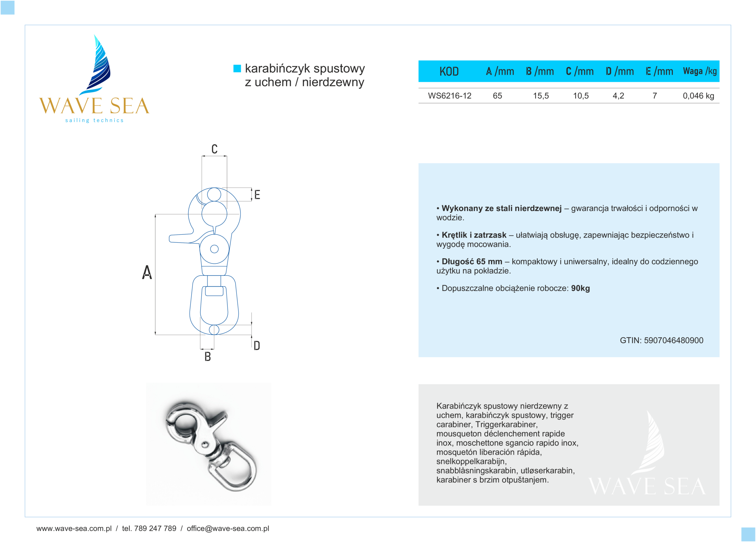Karabińczyk spustowy nierdzewny z uchem 1/2*65 mm to idealne rozwiązanie dla właścicieli jachtów i łodzi, którzy cenią jakość i funkcjonalność. Wykonany z trwałej stali nierdzewnej, doskonale sprawdza się w wymagającym środowisku wodnym, gwarantując odporność na korozję i niezawodność działania. Dzięki krętlikowi oraz zatrzaskowi umożliwia szybkie mocowanie oraz swobodny ruch pod obciążeniem, co eliminuje ryzyko skręcania lin.