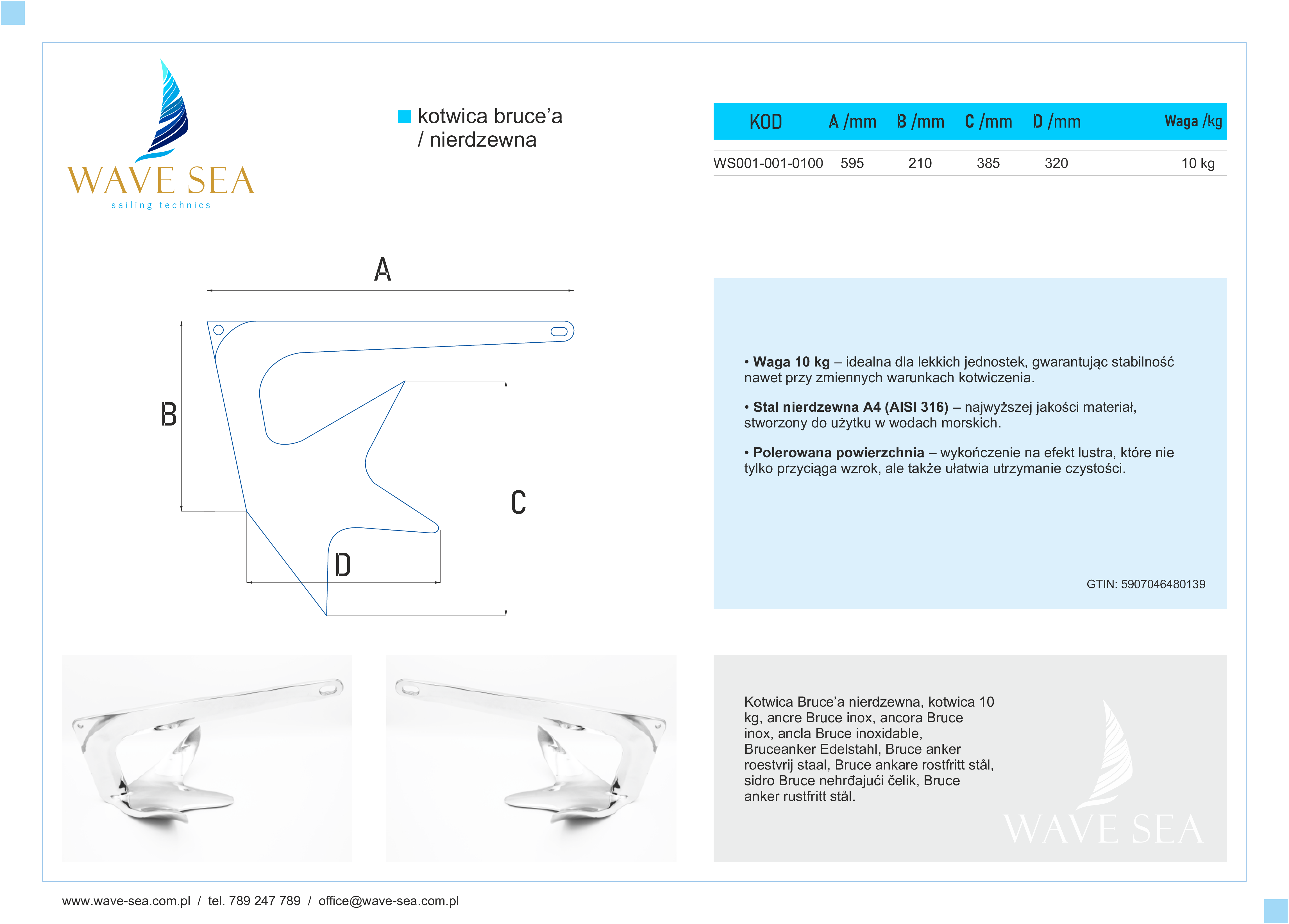 Kotwica Bruce’a nierdzewna AISI A4 – 10 kg to doskonałe połączenie tradycji i nowoczesnych materiałów, które sprosta oczekiwaniom najbardziej wymagających żeglarzy.