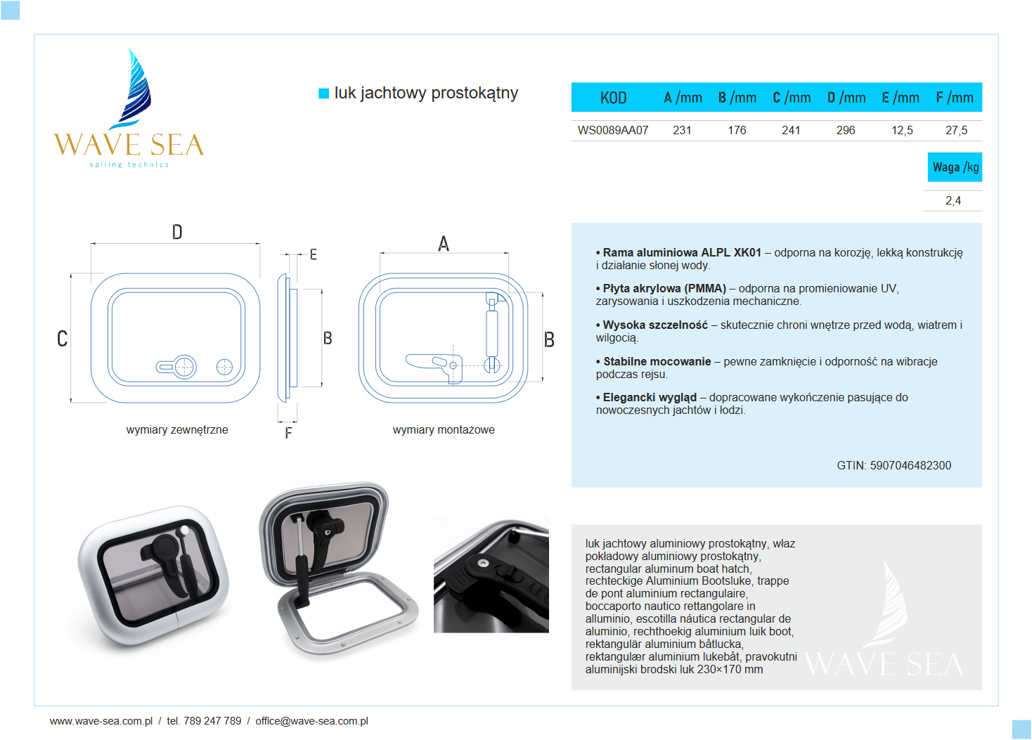 Luk jachtowy aluminiowy prostokątny 23x17 cm to kompaktowe, certyfikowane rozwiązanie, które zapewnia niezawodność, trwałość i estetykę w każdym detalu. Wave Sea – solidność i precyzja wykonania.