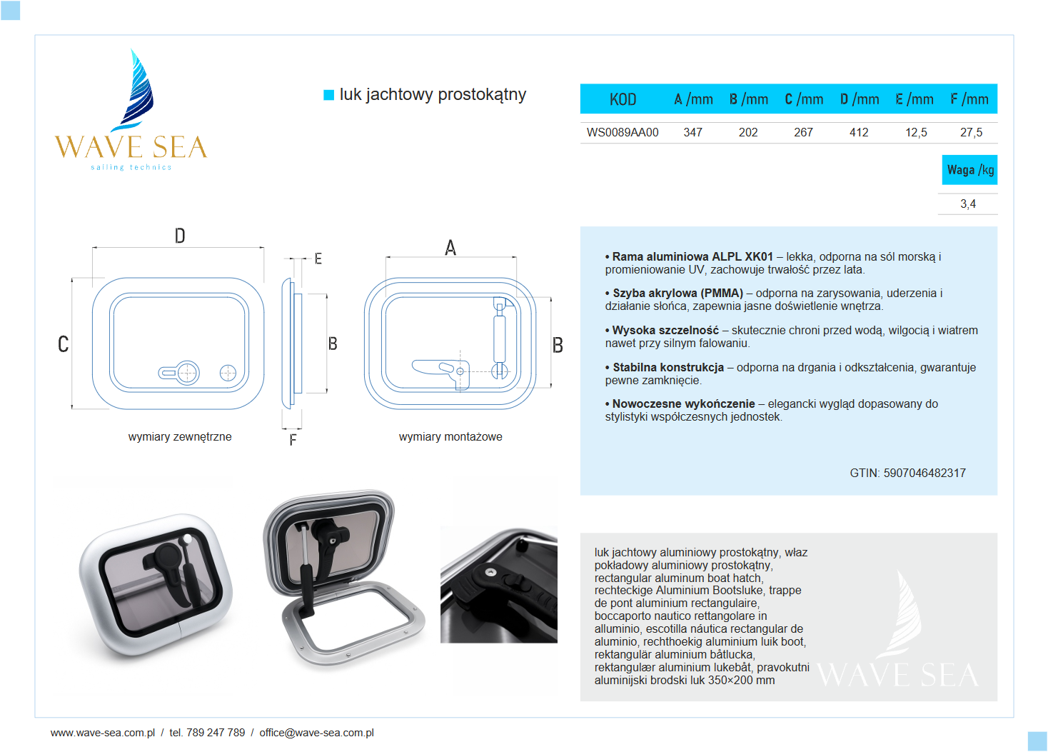 Luk jachtowy aluminiowy prostokątny 35x20 cm to połączenie solidnej budowy, elegancji i europejskiej jakości potwierdzonej certyfikatem – idealne rozwiązanie dla wymagających użytkowników. Wave Sea – solidność i precyzja wykonania.
