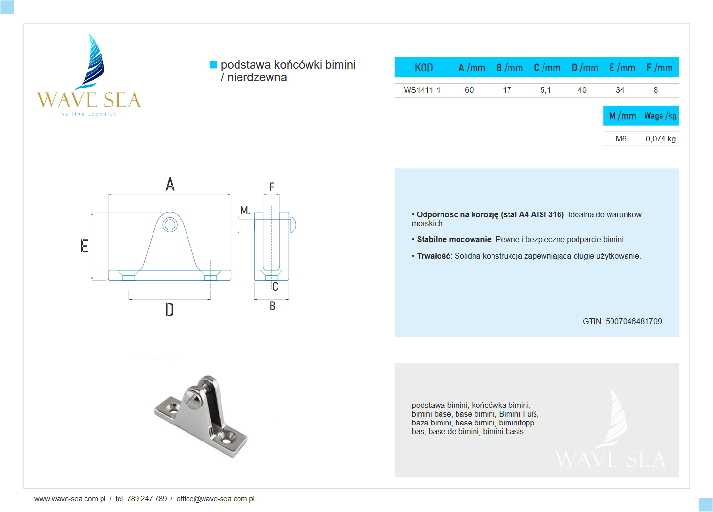 Podstawa końcówki bimini nierdzewna A4 to połączenie trwałości, elegancji i niezawodności, które zapewnia bezpieczeństwo i stabilność całej konstrukcji. Wave Sea – solidność i precyzja wykonania.