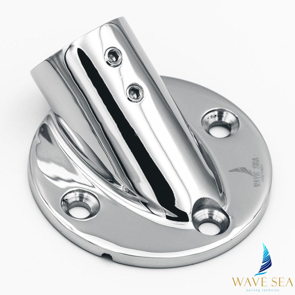 Podstawa relingu nierdzewna okrągła 25 mm. 30° umożliwia pewne zamocowanie relingu o średnicy 25 mm do pokładu łodzi. Dzięki precyzyjnie dopasowanemu kątowi 30°, podstawa gwarantuje stabilność oraz wygodę w użytkowaniu. Montaż jest prosty – wystarczy przykręcić podstawę do powierzchni pokładu (wkręty nie są dołączone), a następnie włożyć reling i zabezpieczyć go w uchwycie.