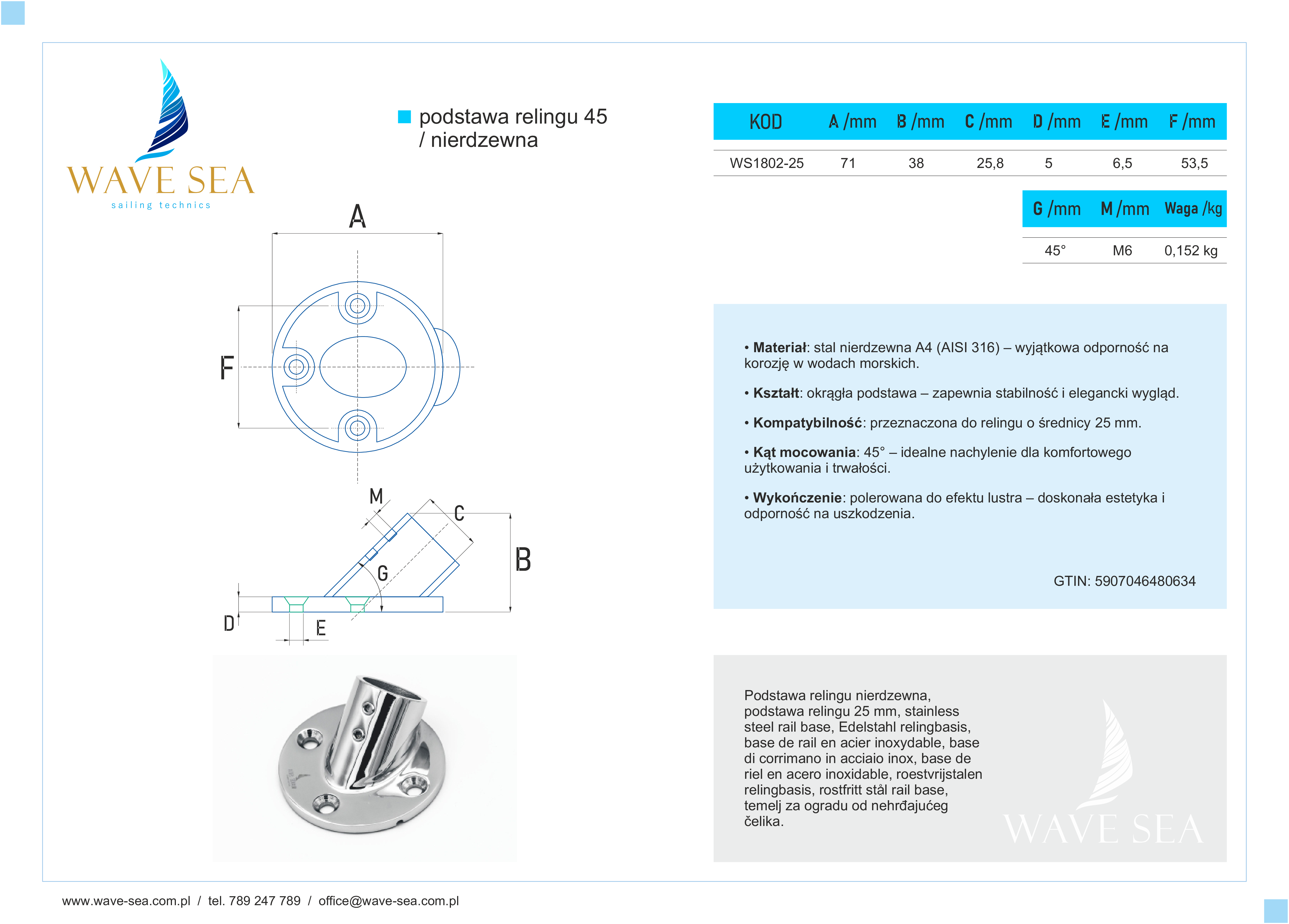 Podstawa relingu nierdzewna okrągła 25 mm 45° to kluczowy element wyposażenia każdej łodzi, który zapewnia niezrównaną trwałość i stabilność. Wykonana z wysokiej jakości stali nierdzewnej A4 (AISI 316), jest odporna na korozję w wodach morskich, co sprawia, że będzie niezawodnym rozwiązaniem przez wiele lat. Polerowana do efektu lustra, podstawa relingu nierdzewna okrągła 25 mm 45° łączy funkcjonalność z estetyką, nadając Twojej łodzi wyjątkowy wygląd.