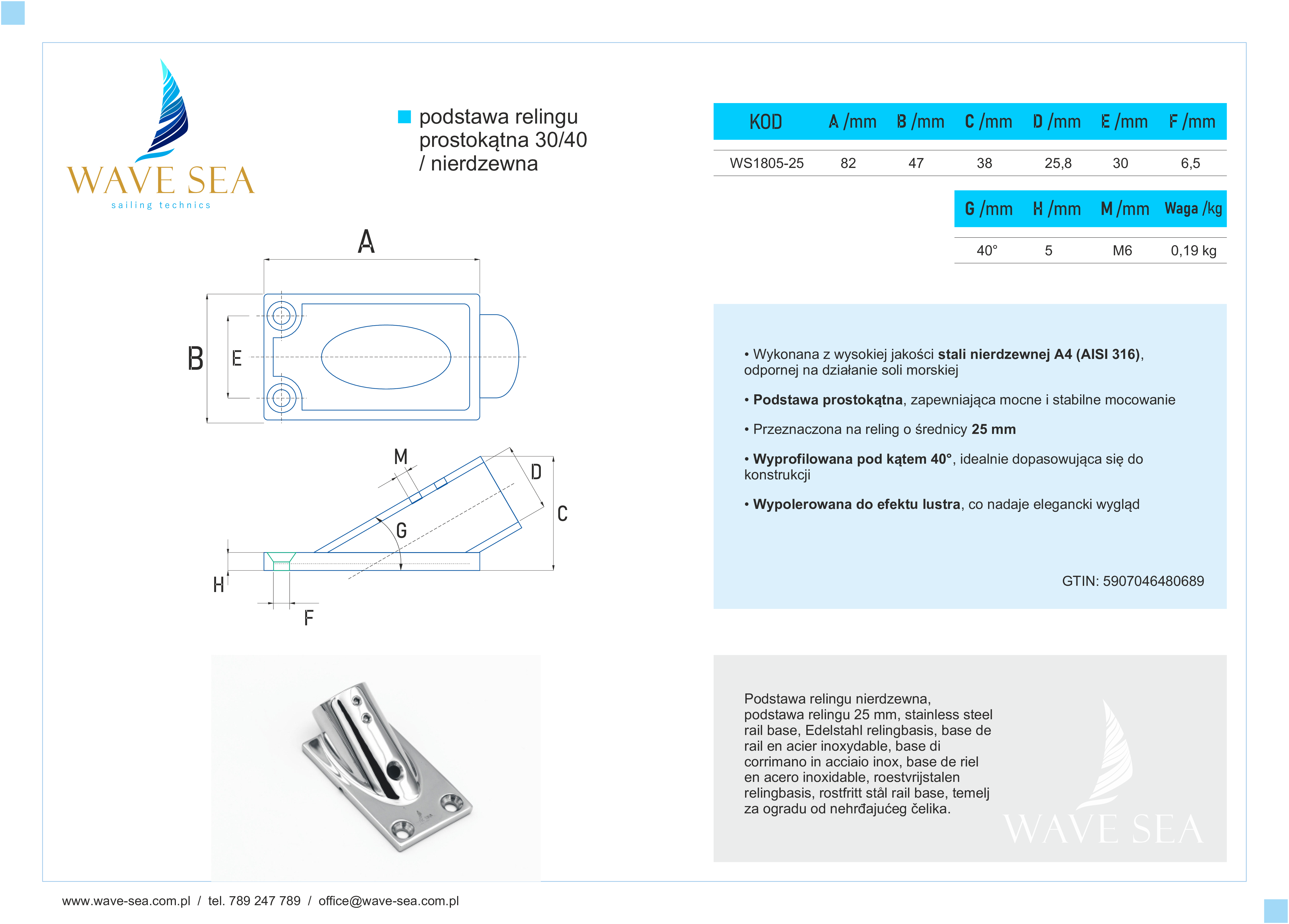 Podstawa relingu to kluczowy element, który zapewnia bezpieczeństwo i stabilność relingu na Twoim jachcie. Wykonana ze stali nierdzewnej A4 (AISI 316), jest idealnym rozwiązaniem do użytku na wodzie morskiej, zapewniając odporność na korozję i trwałość w trudnych warunkach.