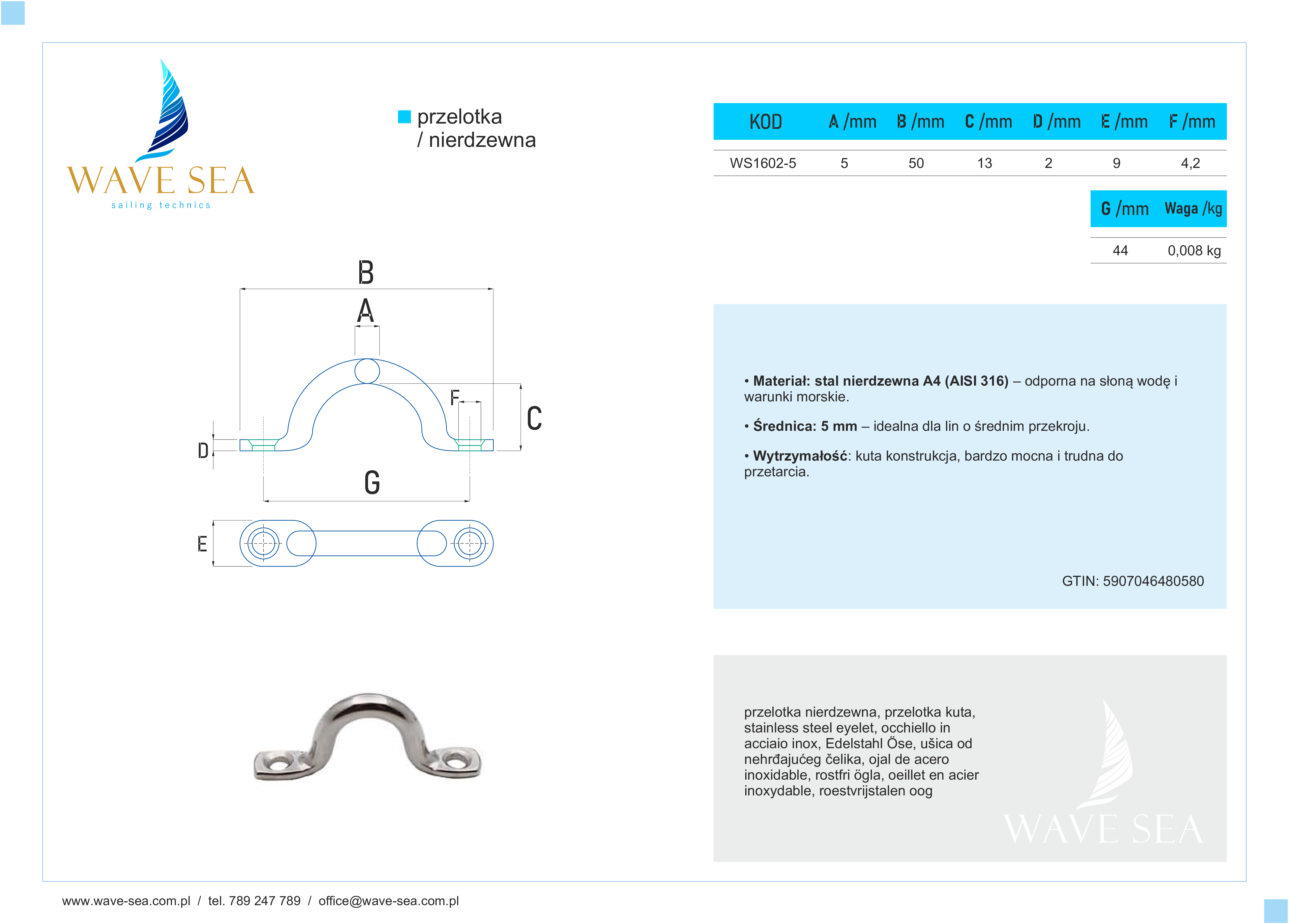 Zadbaj o bezpieczeństwo i trwałość na wodzie dzięki Przelotce nierdzewnej kutej A4 5 mm. Wykonana z najwyższej jakości stali nierdzewnej A4 (AISI 316), idealnie sprawdzi się w środowisku morskim, zapewniając odporność na korozję nawet w trudnych warunkach.