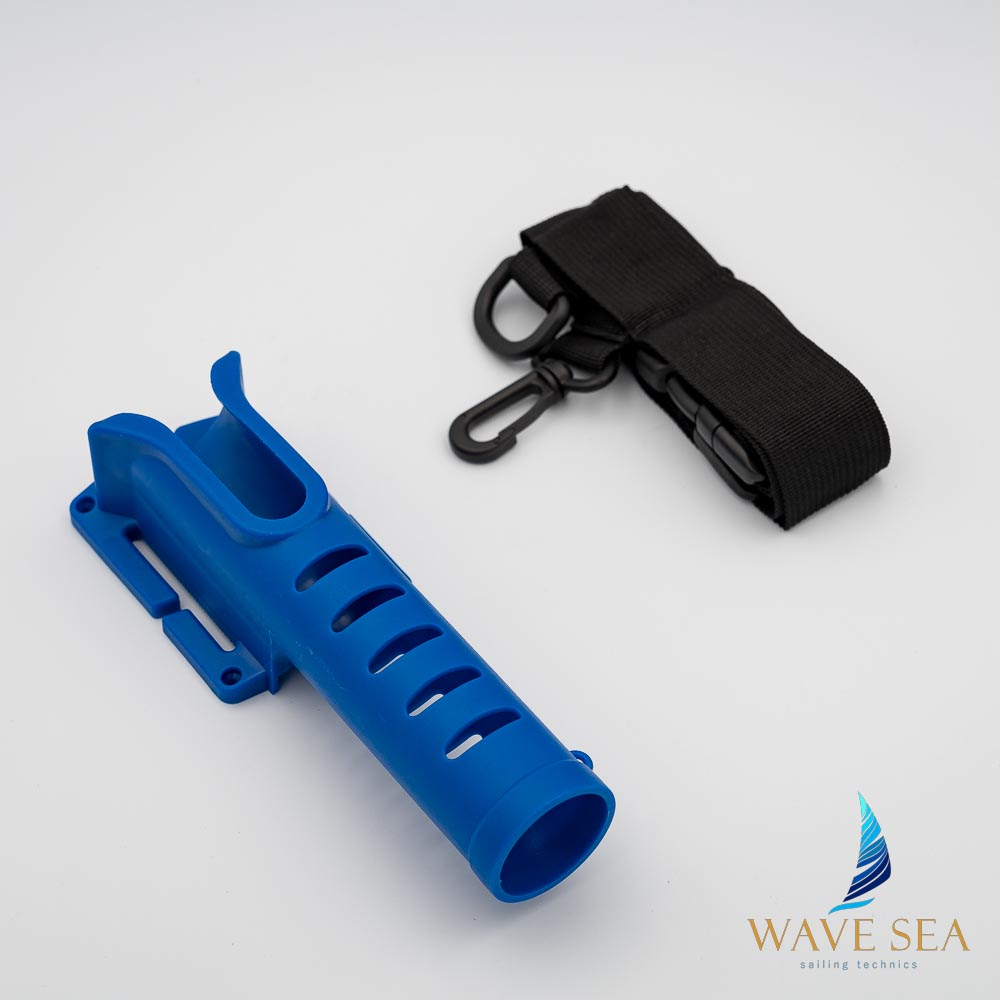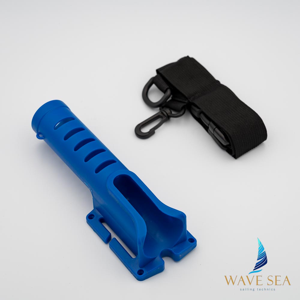 Przenośny uchwyt na wędkę z pasem – niebieski