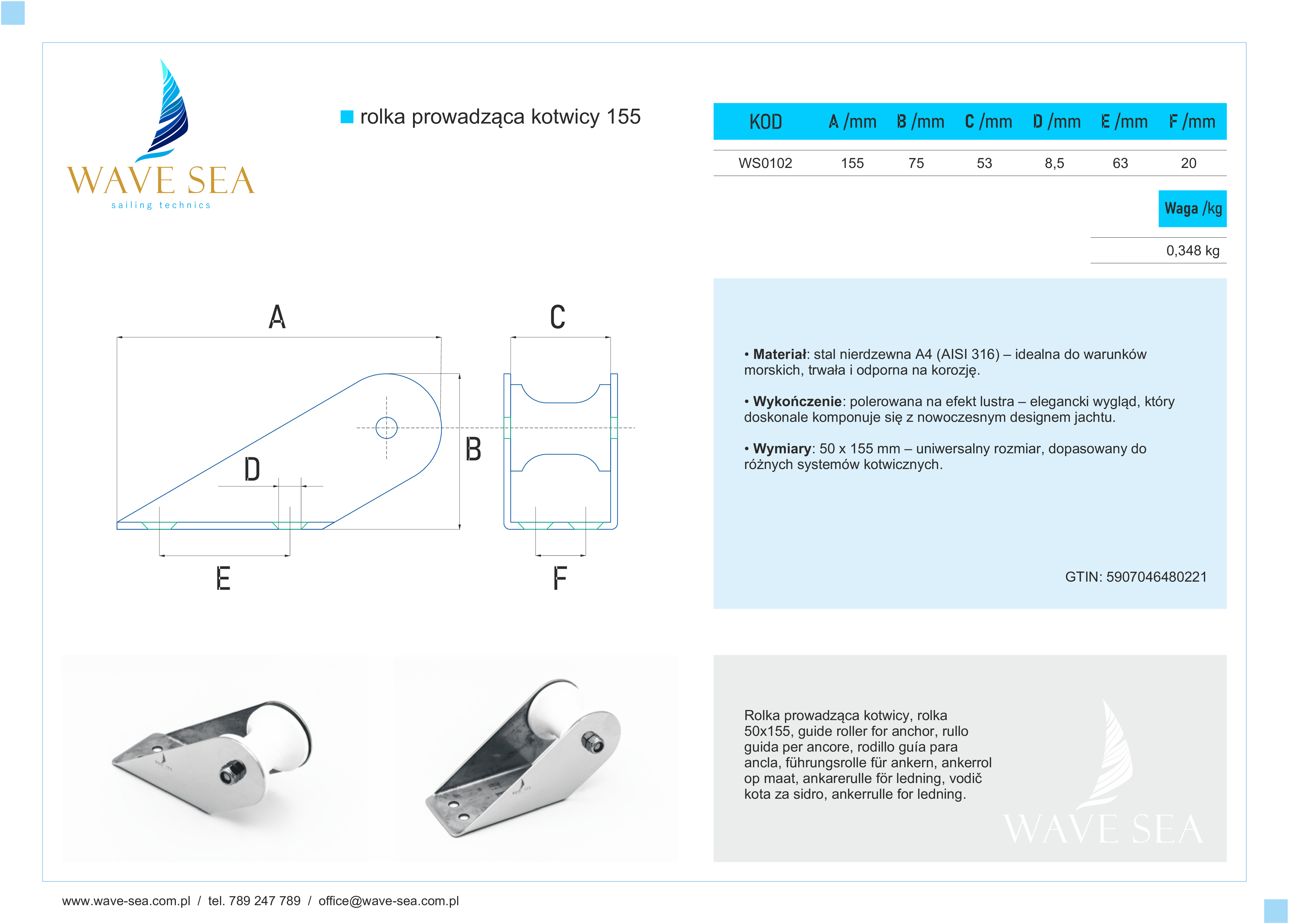 Zadbaj o precyzyjną obsługę kotwicy dzięki Rolce prowadzącej kotwicy 50*155. Wykonana z polerowanej stali nierdzewnej A4 (AISI 316), nie tylko odporna na korozję w wodzie morskiej, ale także wyjątkowo estetyczna dzięki wykończeniu o lustrzanym połysku.