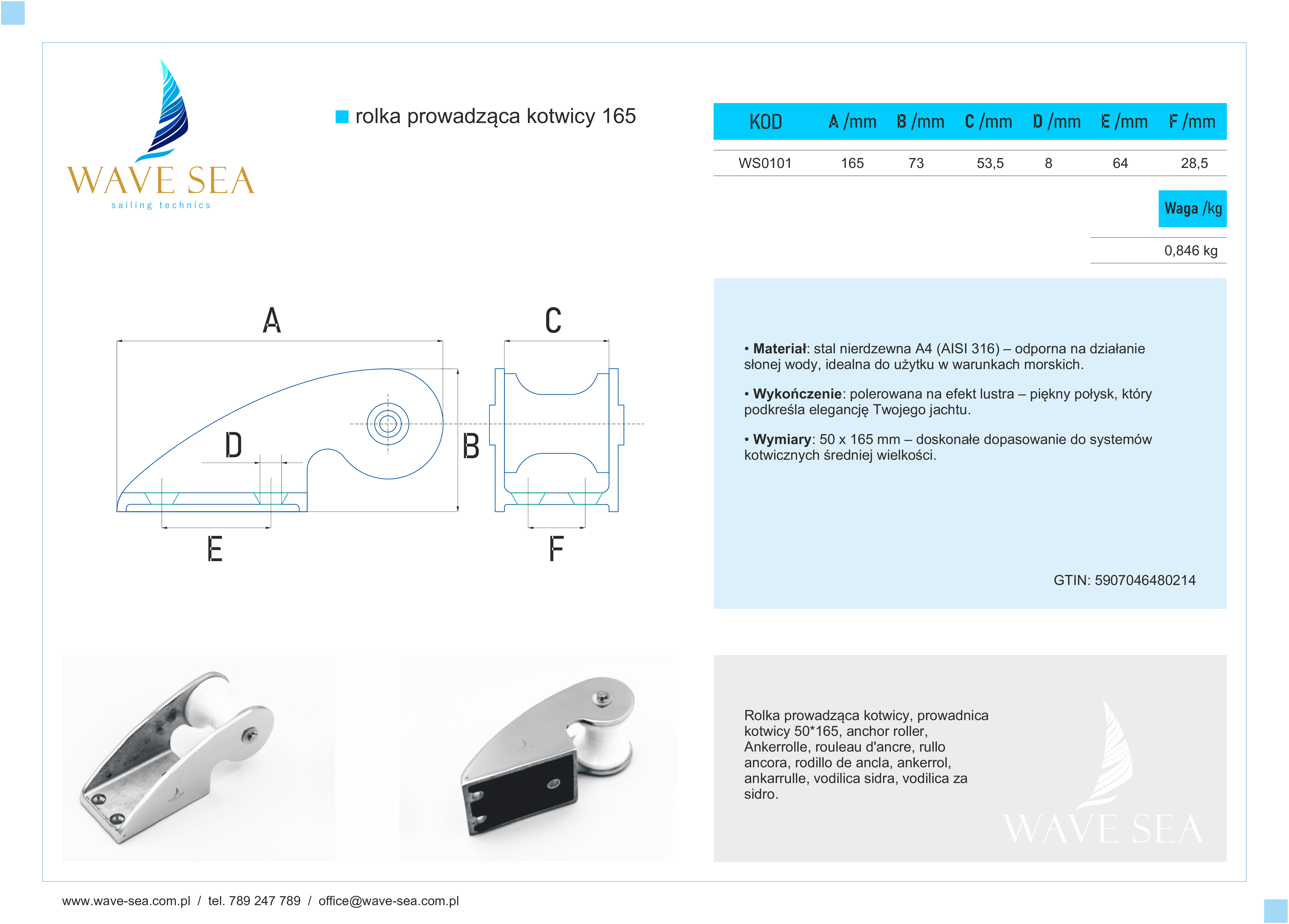 Rolka prowadząca kotwicy 50*165 – niezawodność i elegancja na pokładzie