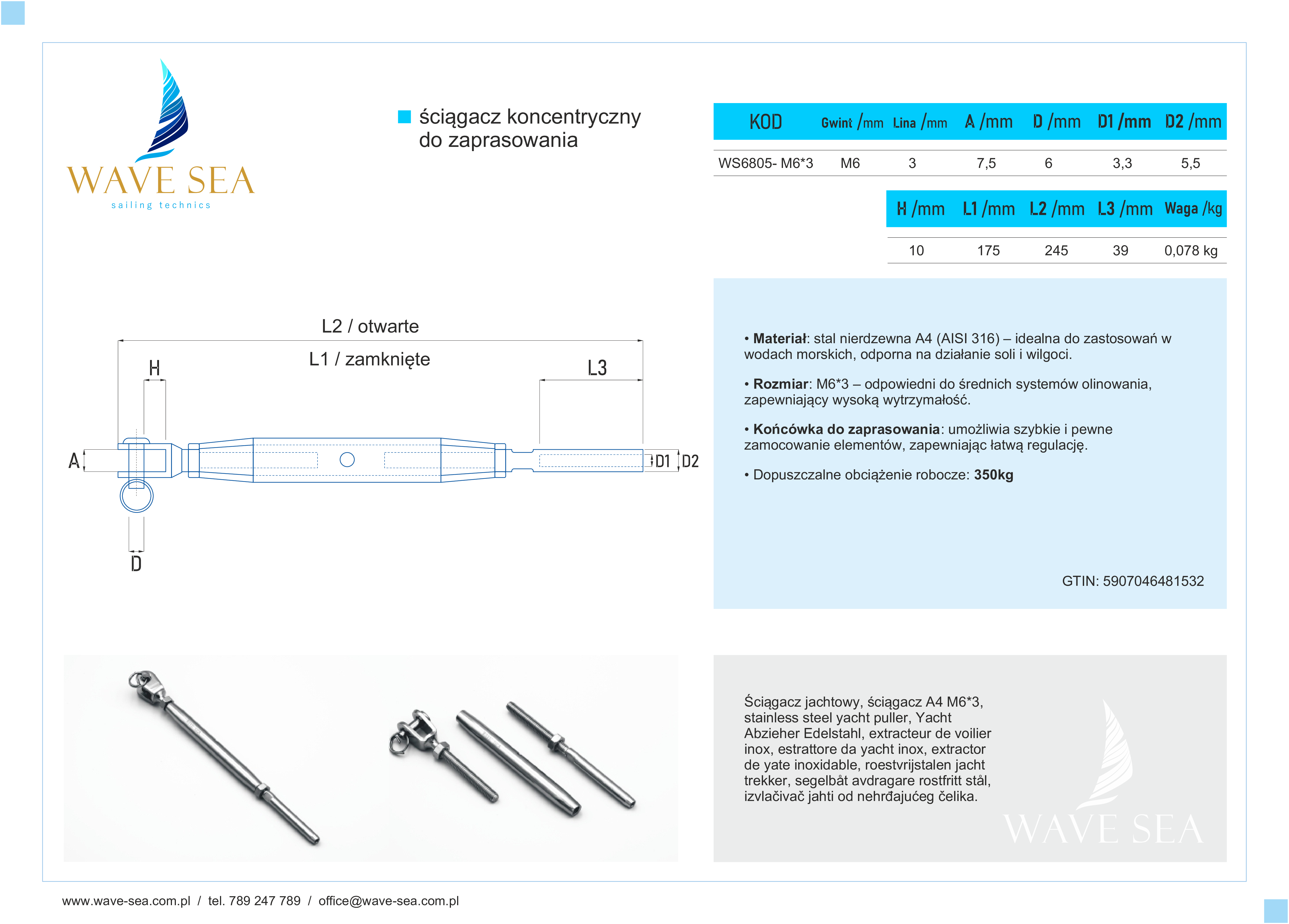 Ściągacz jachtowy z końcówką do zaprasowania A4 M6*3 jest nieoceniony w żeglarstwie, szczególnie na wantach i sztagach, gdzie ważna jest precyzyjna regulacja napięcia. Jego wytrzymała konstrukcja sprawia, że będzie niezawodny przez długie lata, nawet w najbardziej wymagających warunkach morskich.