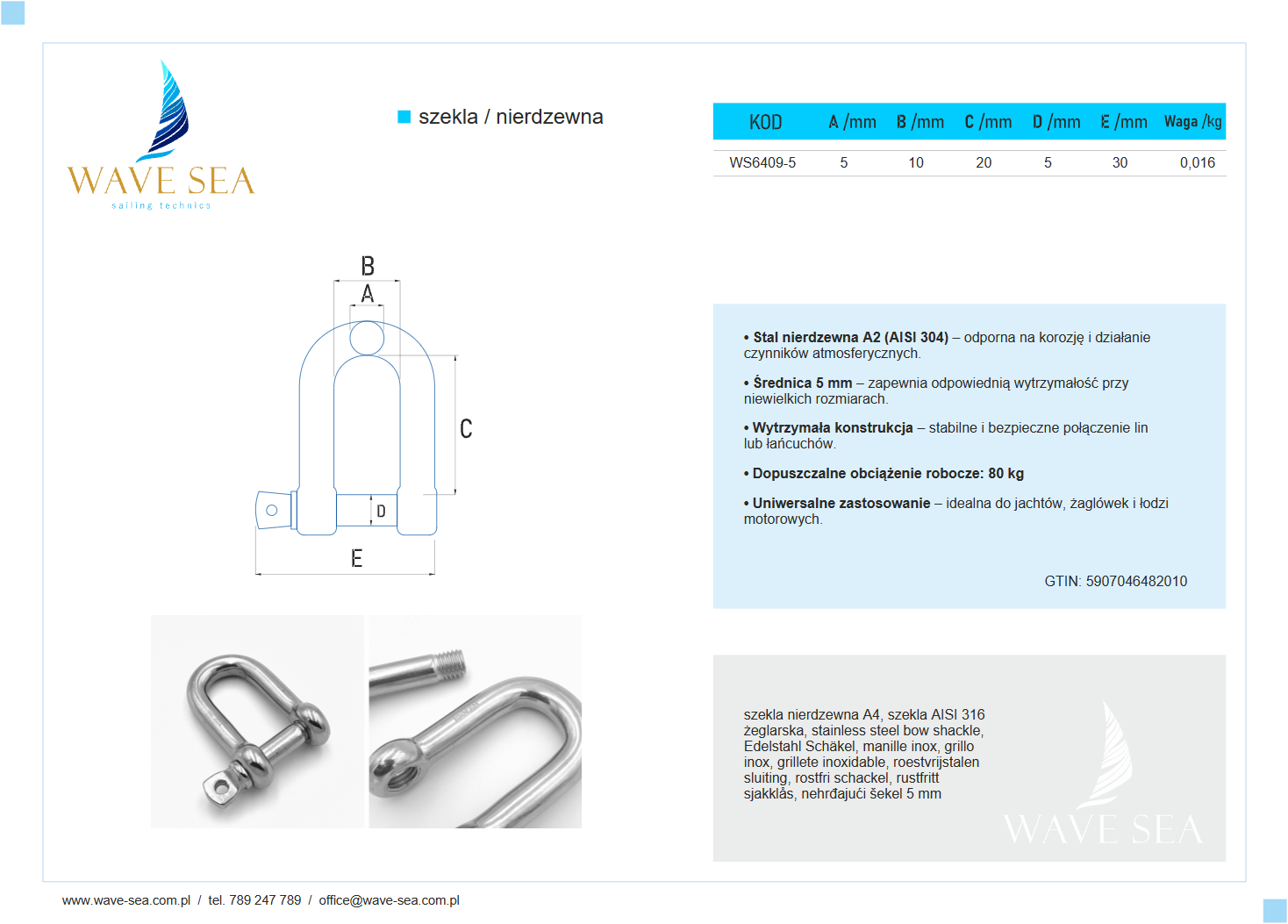 Szekla nierdzewna 5 mm to połączenie trwałości, funkcjonalności i precyzji, które zapewnia niezawodne działanie w codziennym użytkowaniu pokładowym. Wave Sea – solidność i precyzja wykonania.