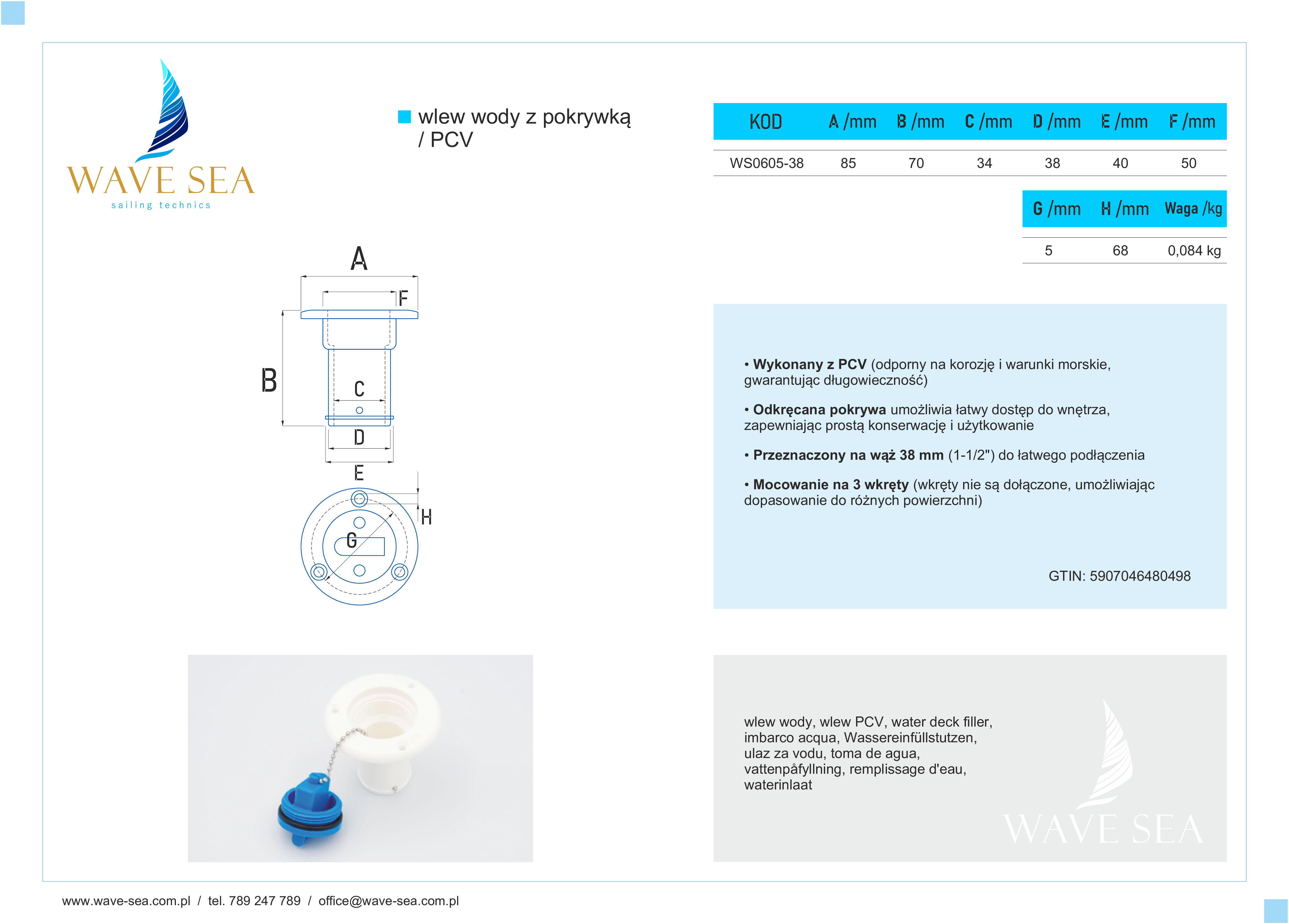 Wlew wody PCV z pokrywką 38 mm to praktyczne rozwiązanie, które wyróżnia się trwałością i funkcjonalnością, zapewniając bezpieczeństwo i komfort użytkowania w trudnych warunkach morskich.