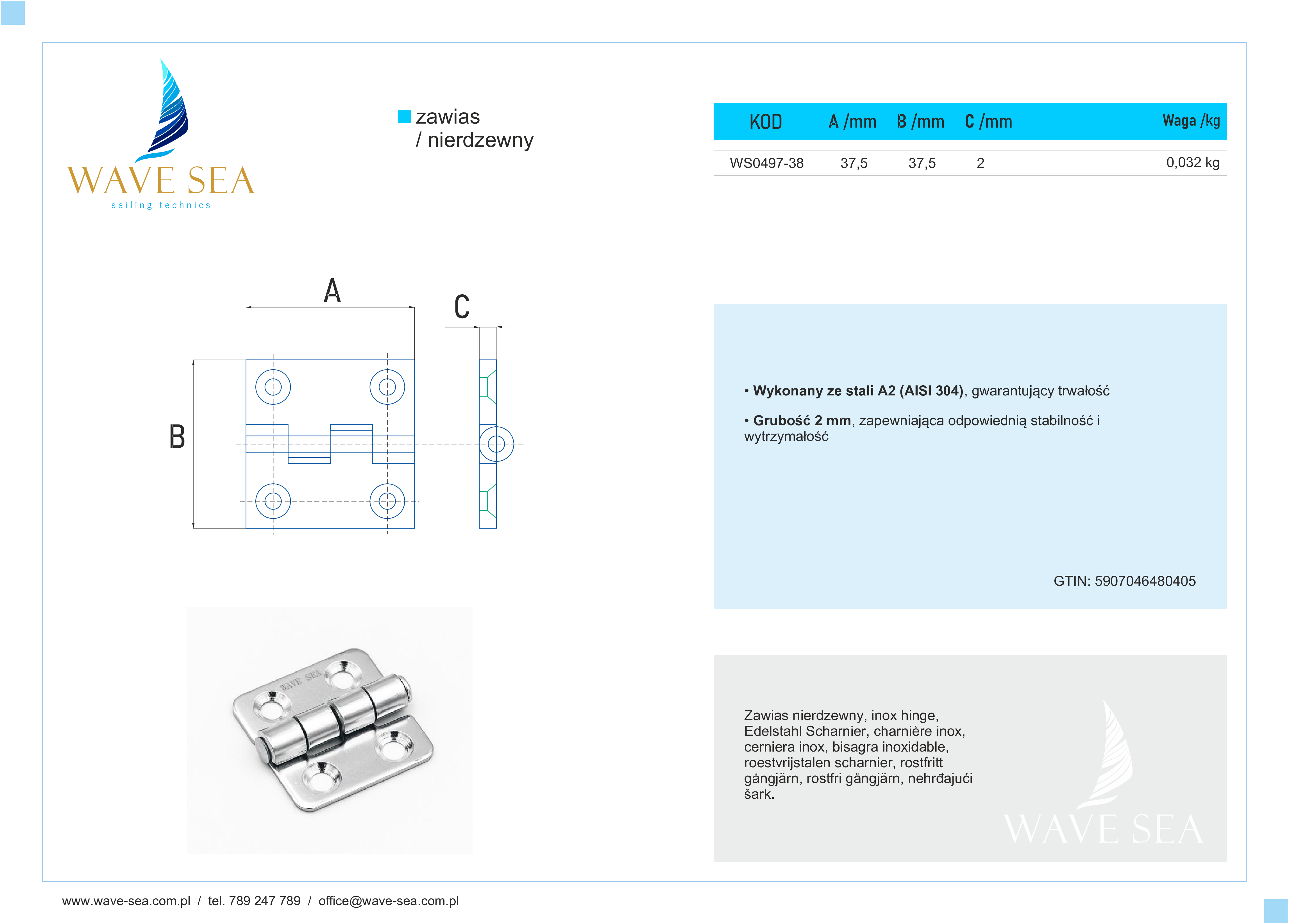 Zawias nierdzewny A2 – 38x38x2 to funkcjonalny element, który zapewnia niezawodność i trwałość w różnych aplikacjach. Wykonany z wysokiej jakości stali nierdzewnej A2 (AISI 304), jest idealnym wyborem do zastosowań, które wymagają odporności na codzienne zużycie oraz lekkiej, ale solidnej konstrukcji. Dzięki swojej kompaktowej budowie, Zawias nierdzewny A2 – 38x38x2 sprawdza się doskonale w mniejszych przestrzeniach, oferując stabilność i długowieczność.