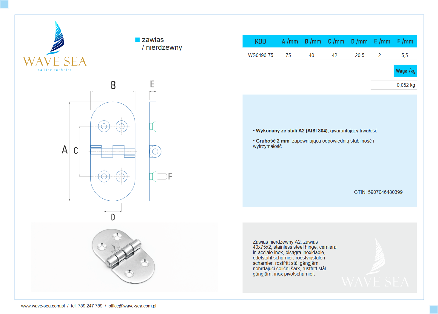 Zawias nierdzewny A2 – 40x75x2 to doskonały wybór do zastosowań, które wymagają odporności na zużycie oraz solidnego, estetycznego mocowania.