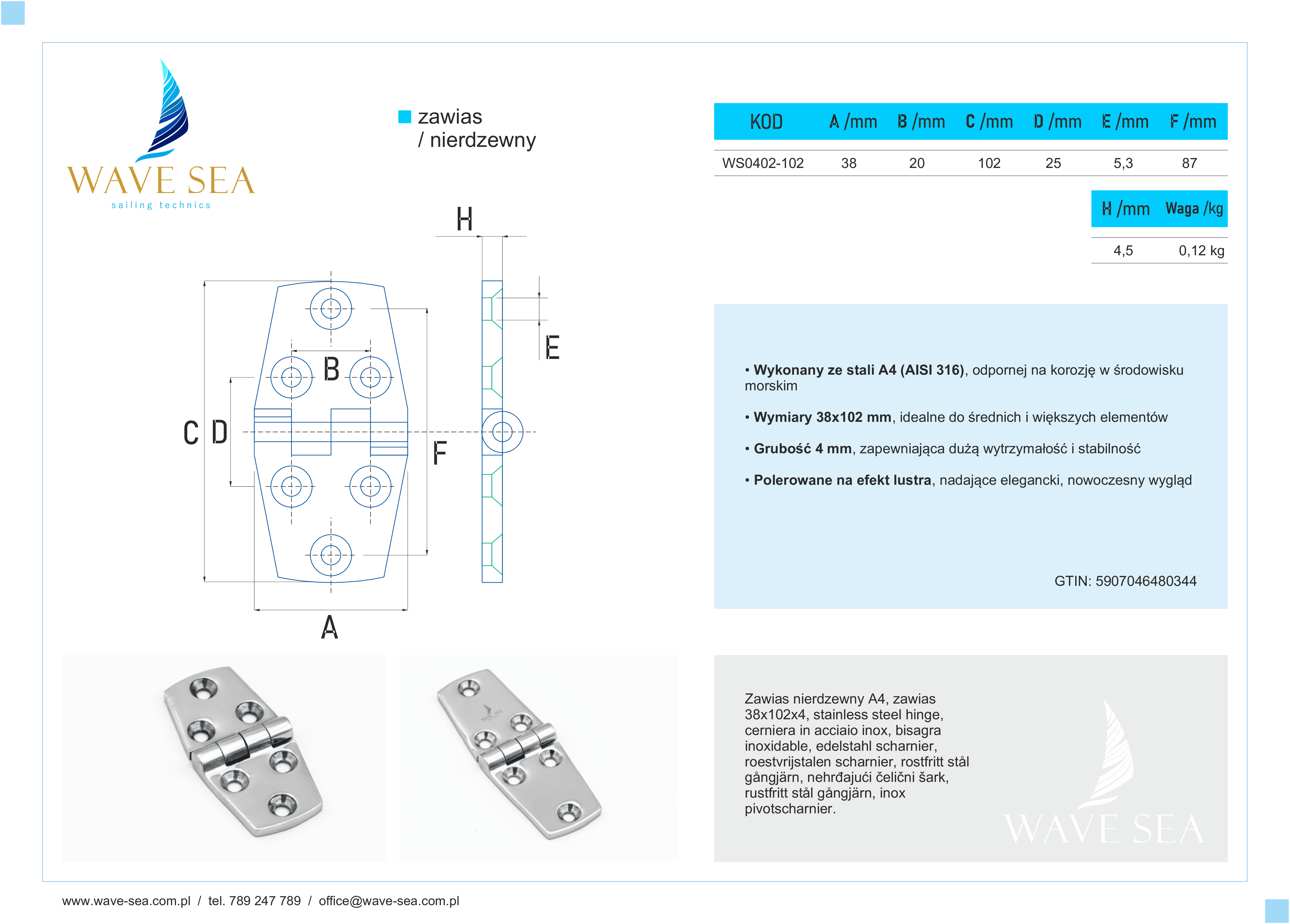 Zawias nierdzewny A4 – 38x102x4 to doskonały wybór do zastosowań, które wymagają trwałości, odporności na korozję oraz estetyki, stanowiący solidne rozwiązanie w wymagających warunkach morskich.
